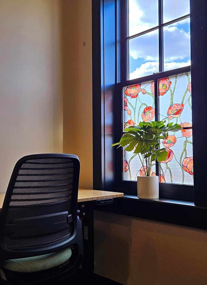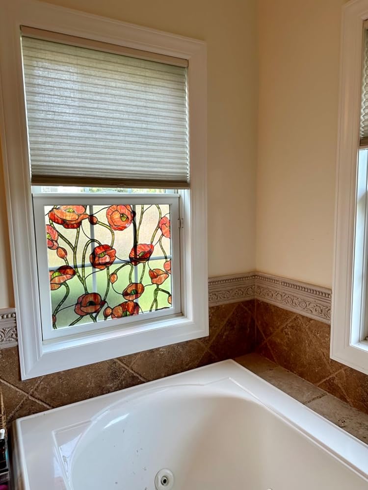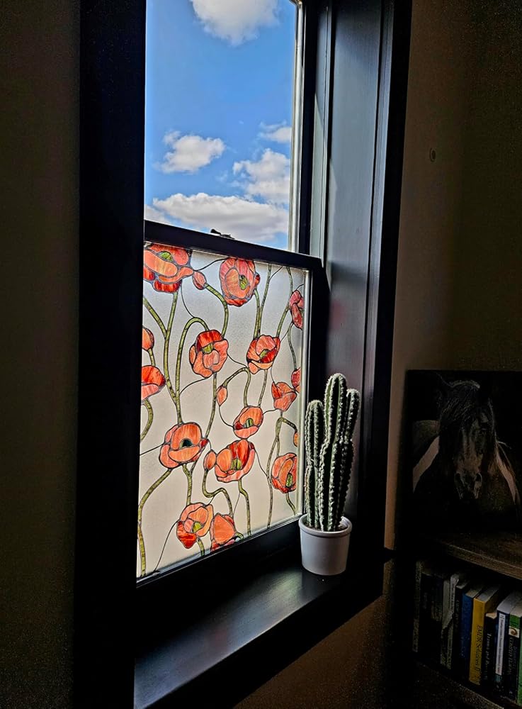 Nom : Film décoratif pour fenêtre en vitrail à motif de fleurs de pavot